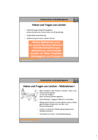 Arbeitsschutz im Bestattergewerk Heben und Tragen von Leichen Gefährdung grundsätzlich gegeben, da das Gewicht pro Person mehr als 20 kg beträgt. Ungünstige Körperhaltung Abstimmung mit…